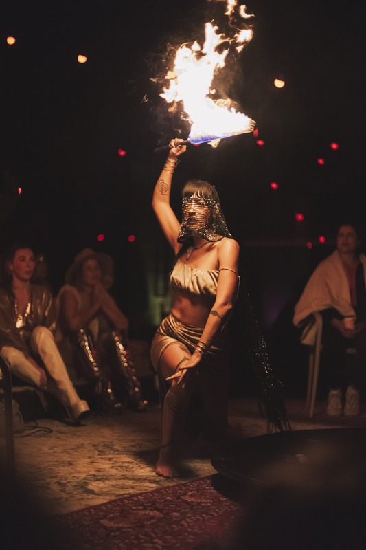 Cleansing the with incences and herbs to create ceremonial space. Own sorted medicine music selection. Involving Audience into prayers for world peace and unity. Various joices of Fire Props.