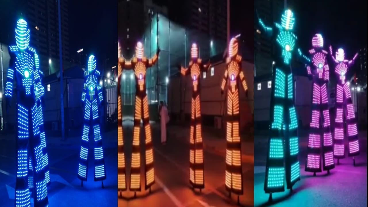 We have LED stiltwalkers, Pixel Poi Branding, Christmas and National day Themed stiltwalkers, jugglers, unicyclist, bubbles show, magician, mime, clown balloon twisting, face painters, mirror man, costume characters, Fire Dancers and more.