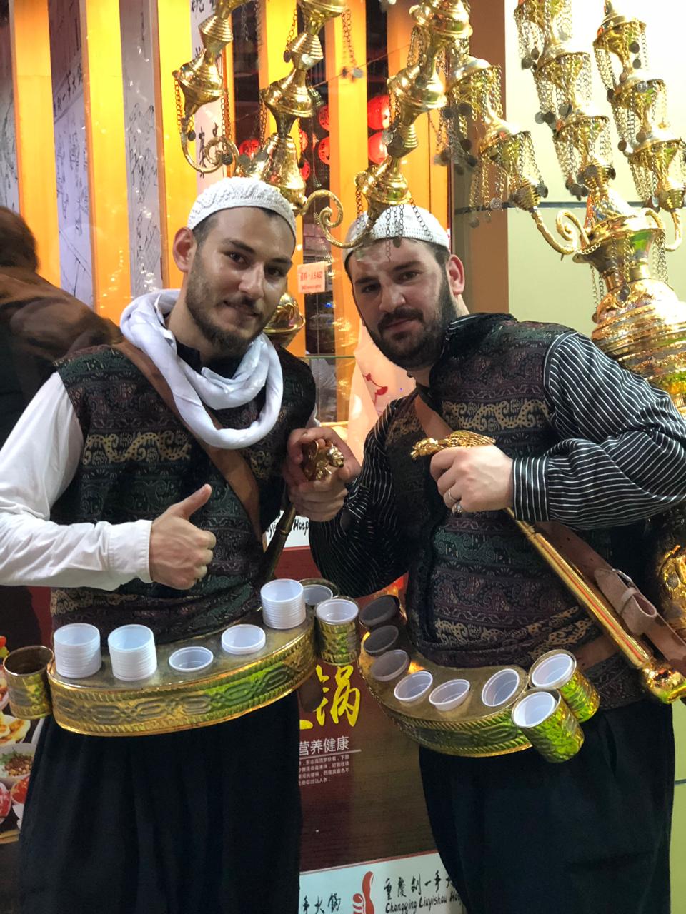 Traditional drink served with folkloric songs in Damascus souk