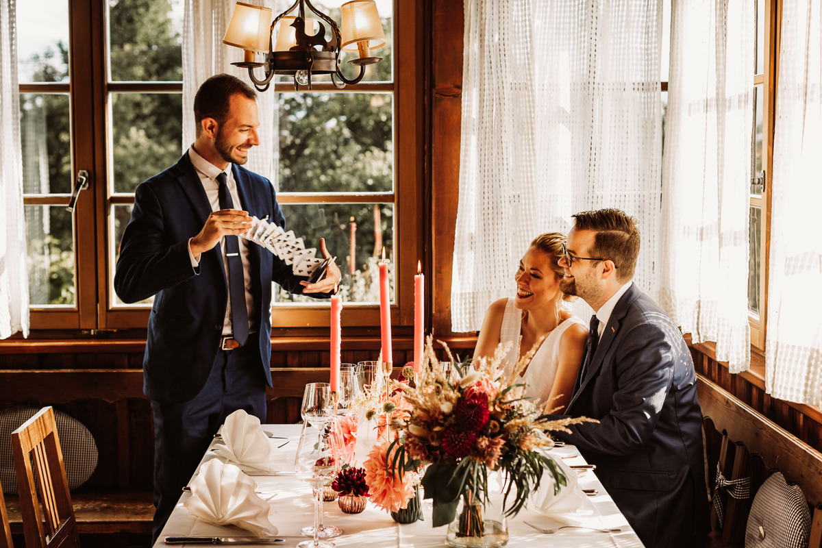 Whether it's a corporate event, wedding, birthday, Christmas party, Brunch, car presentation, your dog's birthday or any other event, I adapt my program specifically to your wishes and needs and develop an individual concept for you. Holding a nice event doesn't have to be enough for you. Outdo it and make it unique! I am at your side as a magician - with targeted advice, creative solutions, and years of experience in the industry. You will get an incredible encounter that you and your guests will remember for a long time!