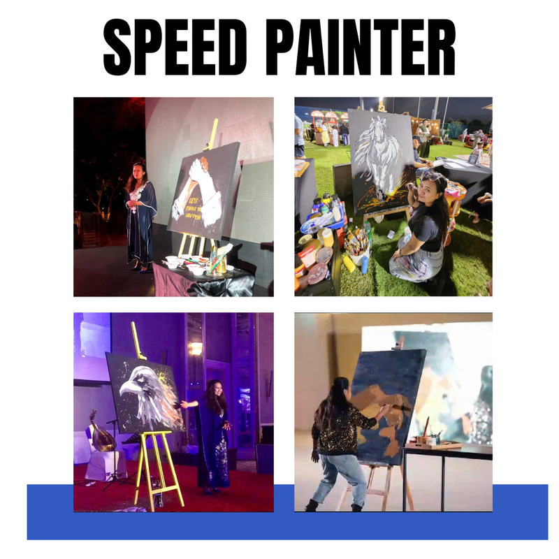 Art Creator, Body Art, Calligraphy, Caricature, Digital Caricature, Face Painter, Fashion Show, Graffiti Artist, Hand Crafts, iPad Faces, Murals, Sand Artist, Sand Art Show, Speed Painting