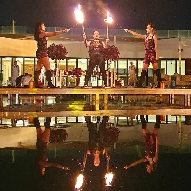 x3 sets of 10 mins each (over 1.5 hours) costumed and choreographed FIRE show, artist booking , fire props, fire-safe costumes, fire safety equipment, fire safety personnel, fuel, music, transportation within Dubai