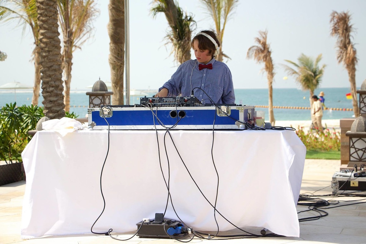 DJ Jake Roomstar, The youngest working DJ in the Middle East with seven years of professional UAE Experience under his belt for clients such as Etisalat, Bloomingdales, Level Kids, Saucette Kids, GAP, Babyshop Arabia (Landmark Group) Osh Kosh, Nestle, and more! - learned the craft in Dubai starting from the age of seven years old and quickly became a professional.