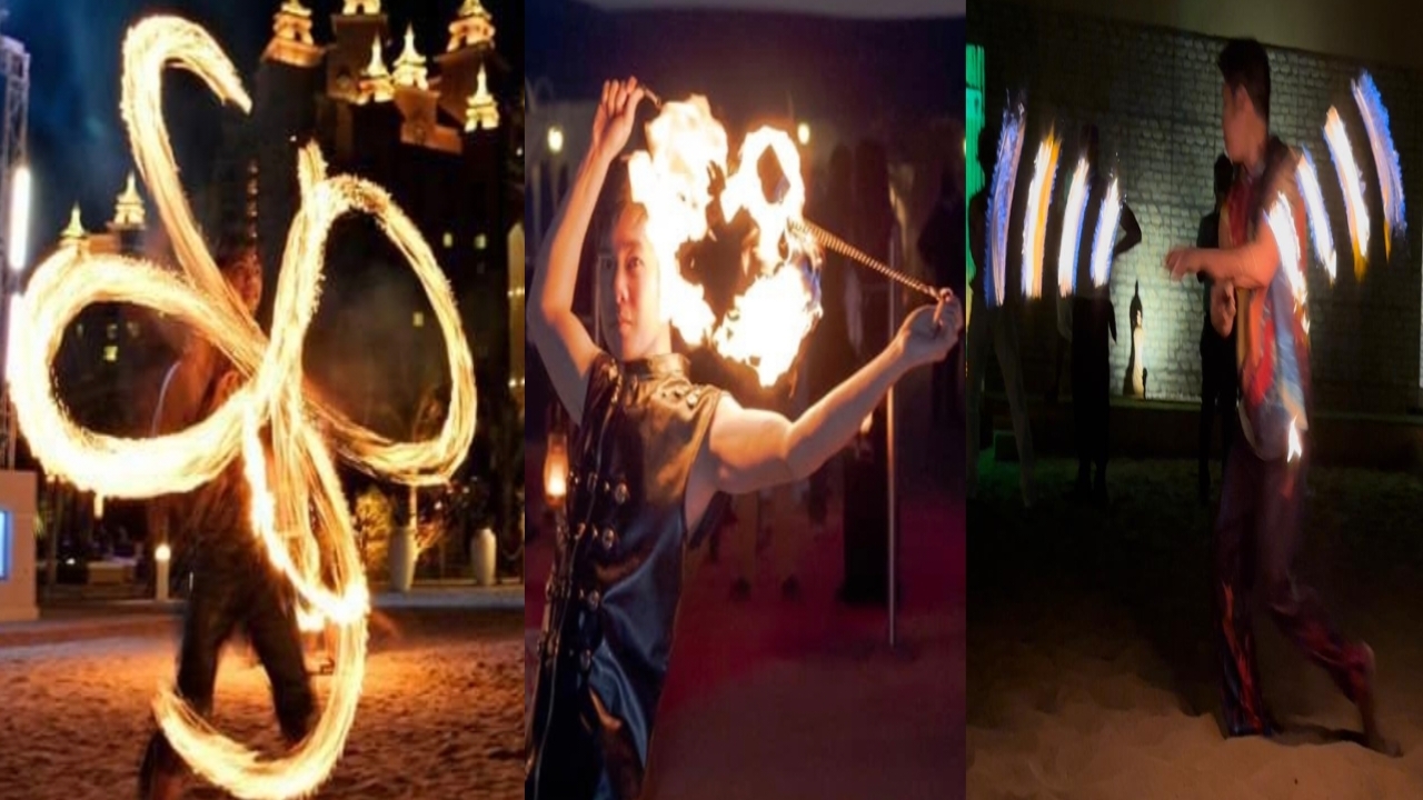 Fire eat, fire poi and fire baton by JAN in 7 star hotel
