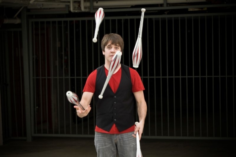 Josh first came in contact with juggling at an after school circus program in Normal, Illinois. There he learned to juggle 3 clubs and later 3 torches. After his freshman year of high school, Josh moved to Malibu, California. He performed at his school’s talent show with the skills he hadn't used in some time. Someone in the audience sent Josh a video of a World Juggling Federation Juggler. Josh was amazed, and started practicing again. In the following years Josh began competing in the world championships of juggling. Josh has won a combined 9 gold medals from the World Juggling Federation and International Juggler’s Association. After graduating college Josh worked for a marketing agency for 3 years before becoming a full-time juggler. He applies his degree in Entrepreneurial Studies and the skills he learned in his marketing job to his juggling career.