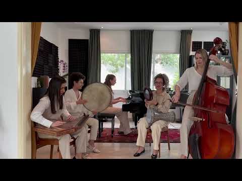 5 musicians Flying with the qanoon and percussion instruments