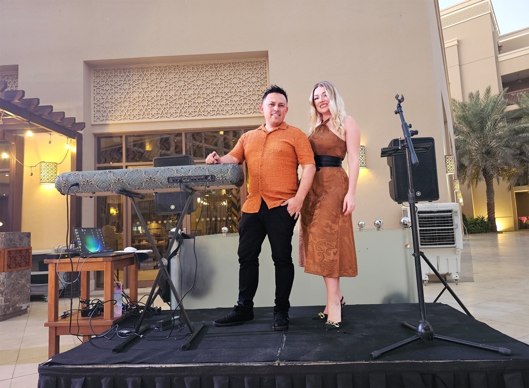 A duo band with the vocals of Scottish singer Courtney and the Latino skills on the keys by Jaime. Together the pair have been performing as the residency band for Doubletree by Hilton Al Marjan for the past year, after finishing their contract as part of a 7-piece party band at Rock Bottom Cafe in Barsha Heights, Dubai. Individually they have performed in countries all around the world included Spain, Greece, UK, Oman, Bahrain and UAE. Their skills and years of experience combined bring the energy of Latino fiesta with cheeky British charm making an unforgettable experience for audiences.