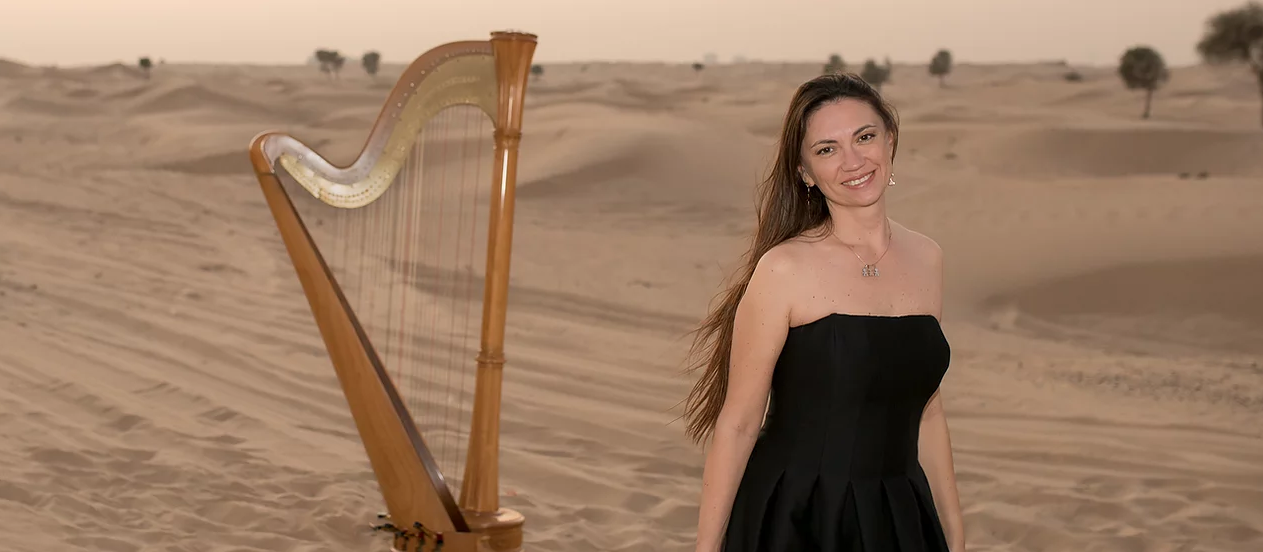 Harpist at Dubai Frame